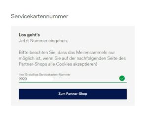 - Gebt unten Eure 15-stellige Servicekarten-Nummer an.