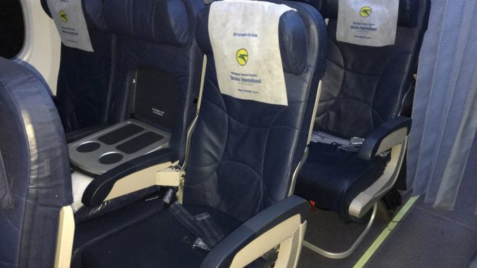 Immerhin wurde für jeden Gast mit Business-Ticket eine gesamte 3er Sitzreihe zur Verfügung gestellt, mit einem Premium Produkt hatte das aber nichts mehr zu tun.