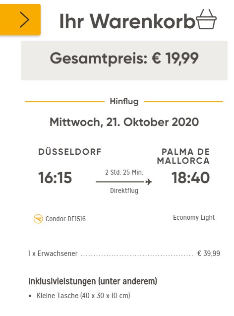 - Condor Buchungsseite aufrufen