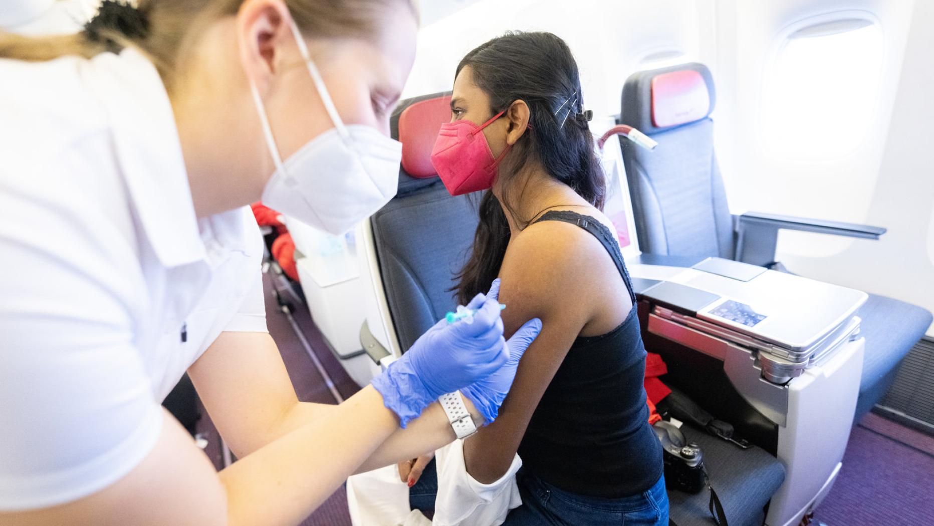 Die Impflinge durften während und nach dem Stich in der Austrian Airlines-Langstreckenmaschine Platz nehmen und sich durch das Angebot der „Austrian Melangerie“ kosten. Anläßlich der Öffnung der USA für EU-Bürger am 8. November wurde zusätzlich ein Flug für zwei Personen nach New York City verlost.