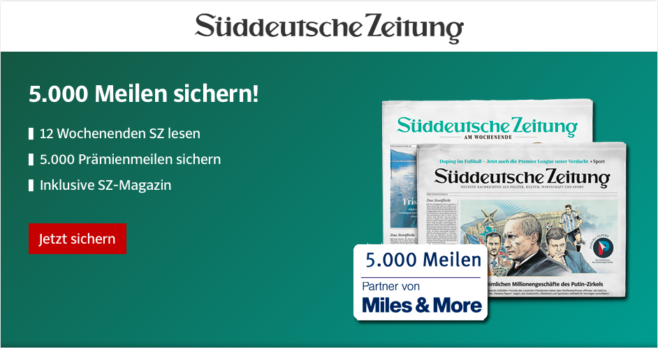 Mit Zeitschriften und Zeitungen lassen sich bekanntlich sehr einfach und effizient Meilen sammeln. Die Süddeutsche verschenkt gerade zum 12 Wochen Abo der Süddeutschen am Wochenende satte 5.000 Meilen für 49,90 Euro. Hierbei entsteht ein hervorragender „Meilenpreis“ von nur 9,98 Euro pro 1.000 Meilen. Damit ist es eines der günstigsten Angebote, welche es momentan gibt. Normalerweise lassen sich solche Werte nur durch Payback Prämienabos erzielen.