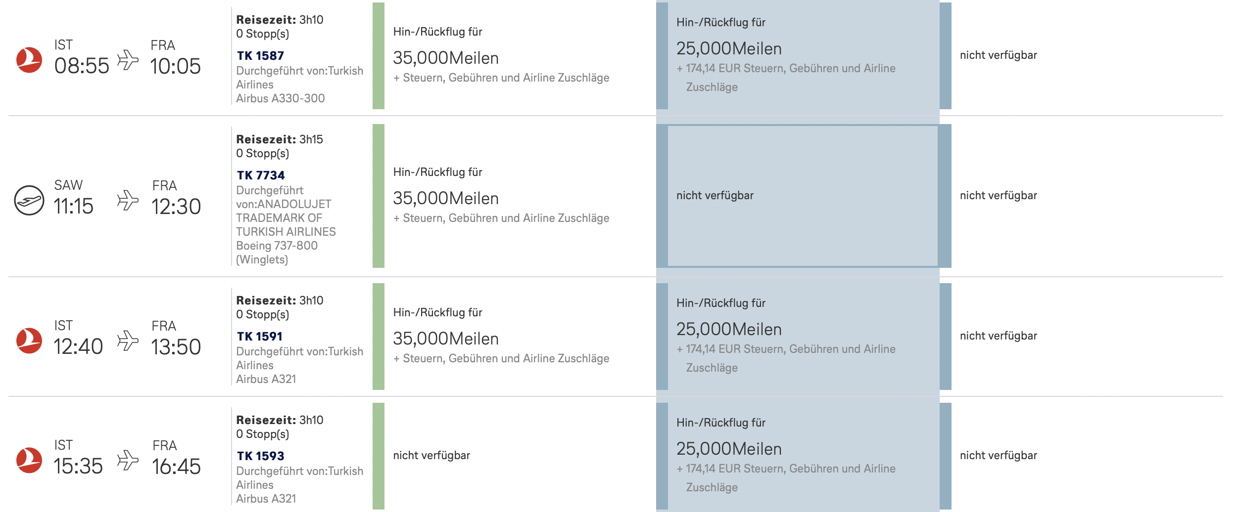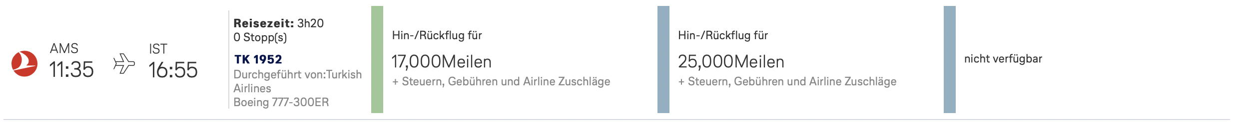 Hierbei müsst Ihr bei der Flugprämiensuche die Option „unterschiedliche Flughäfen/ Gabelflüge auswählen“. Anschließend kann man Flüge XXX nach Istanbul und Istanbul nach YYY suchen. Als Flugdatum muss man für Hin- und Rückflug entweder den selben Tag oder einen direkt folgenden Tag wählen (wegen den max. 24 Stunden Transfer in Istanbul).