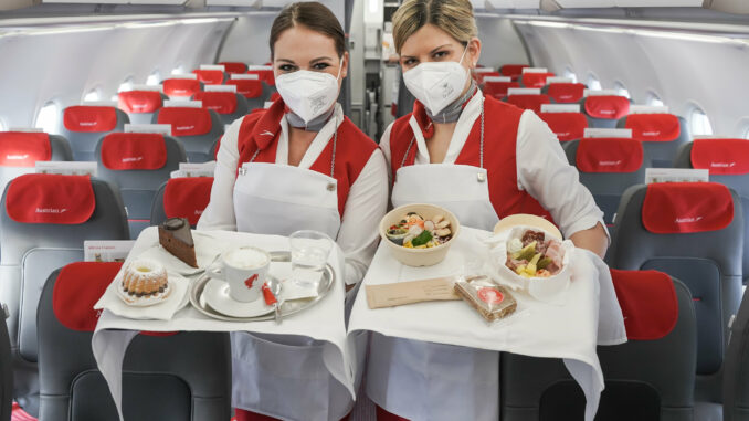 Soweit ich weiß ist das Vorgabe des Österreichischen Staates, da Lufthansa und Swiss auf meinen letzten Flügen die OP-Masken gereicht hat.