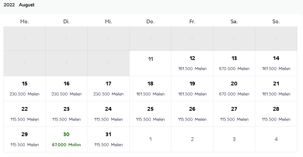 Bei dynamischen Preisen kostet eine Meileneinlösung eben den Meilenwert, der bei der Anfrage angezeigt wird. Das kann dann täglich oder stündlich variieren, je nach Gusto des Programmbetreibers. Für Kunden ist es dann schwer, die Übersicht zu behalten und der Programmbetreiber kann jederzeit die Preise ändern.