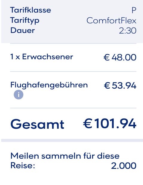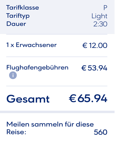 Hier ein Beispiel eines Roundtrips von Berlin nach Thessaloniki. Im Tarif Light gibt es 560 Meilen, der etwa 35€ teurere Tarif ComfortFlex beschert Euch zusätzliche Flexibilität und Vorteile wie Freigepäck. On Top kommen 2.000 Meilen aufs Konto, mit der Promo sind es satte 12.000 Meilen!