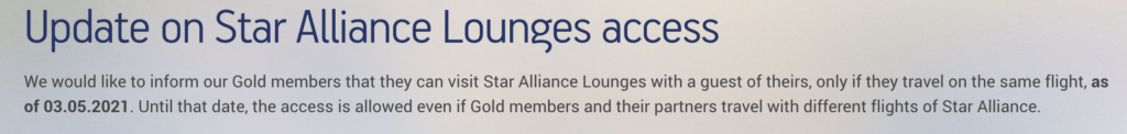 Up to this date, Star Alliance Gold members could invite a guest holding a boarding pass valid on any Star Alliance member airline departing the same day. From the date of policy change, the guest must be on the same flight as the Gold status member.