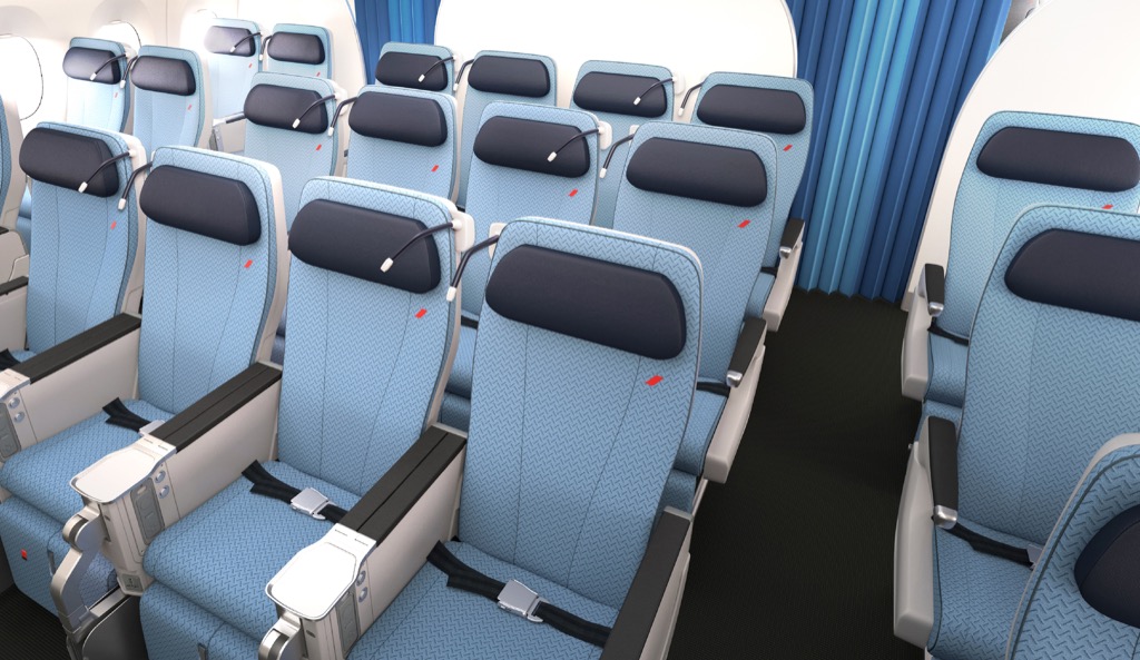 Air France wird insgesamt 34 Business Class Sitze in einer versetzten 1-2-1 Anordnung verbauen. Somit hat hier auch jeder Passagier direkten Gangzugang, allerdings ist das Layout anders als bei der aktuellen Business Class von Air France.