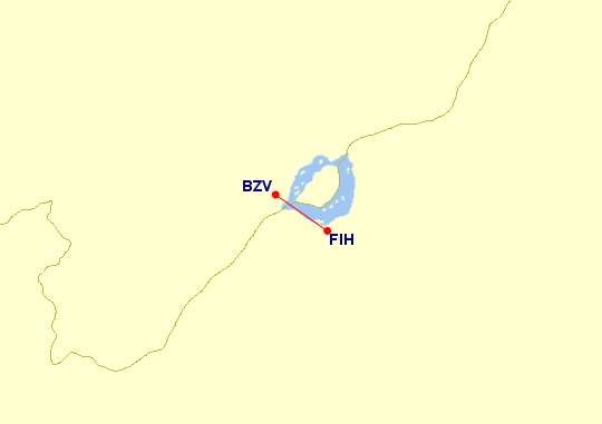 Geografisch gelten Brazzaville und Kinshasa als die am nächsten gelegenen Hauptstädte der Welt, diese sind nur durch den Kongo-Fluss getrennt. BZV und FIH sind die Airports der Hauptstädte von der Republik Kongo (RoC) und der Demokratischen Republik Kongo (DRC). Die Flugzeit ist planmäßig mit 40 Minuten angegeben, selbst mit Rollzeit wird dieser Wert zum Teil deutlich unterschritten.
