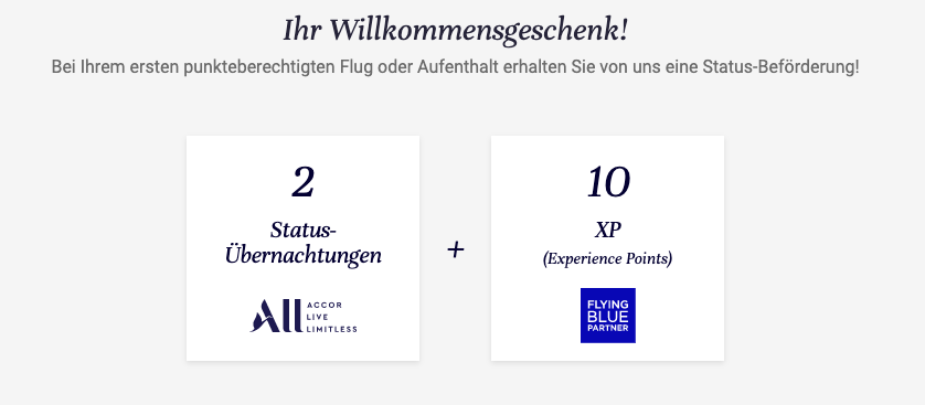 Auch in Sachen Status gibt es einen kleinen Bonus, nach einem Flug oder Übernachtung erhalten die Mitglieder eine Gutschrift um schneller zum nächsten Level aufzusteigen. Im Hotelprogramm ALL werden 2 Nächte gutgeschrieben, bei Flying Blue kommen 10 XP aufs Konto. XP sind die Statuspunkte im Vielfliegerprogramm Flying Blue, welches Air France, KLM und einige andere Carrier nutzen.