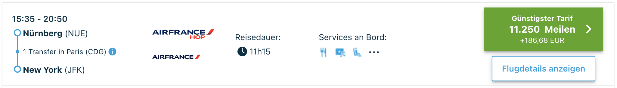 Die fünf Langstrecken werden zwar überwiegend in Economy Class angeboten- der Meilenpreis ist aber durchaus interessant. Auch wenn man meist regulär günstig ein Ticket nach New York bekommt, sind einzelne Termine vielleicht doch als Prämie spannend: