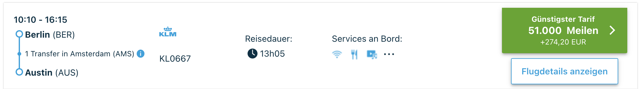 Der Preis nach Austin ist deutlich höher, selbst für einen Flug in der Business Class ist das Angebot nicht gerade berauschend. Dennoch ist der Wert niedriger als sonst und könnte für manche Teilnehmer attraktiv sein.