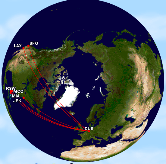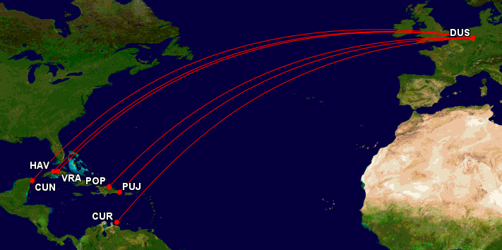 Zusätzlich zu den USA Zielen wird man noch mit geringer Frequenz einige Sonnenziele in der Karibik ab Düsseldorf anfliegen.