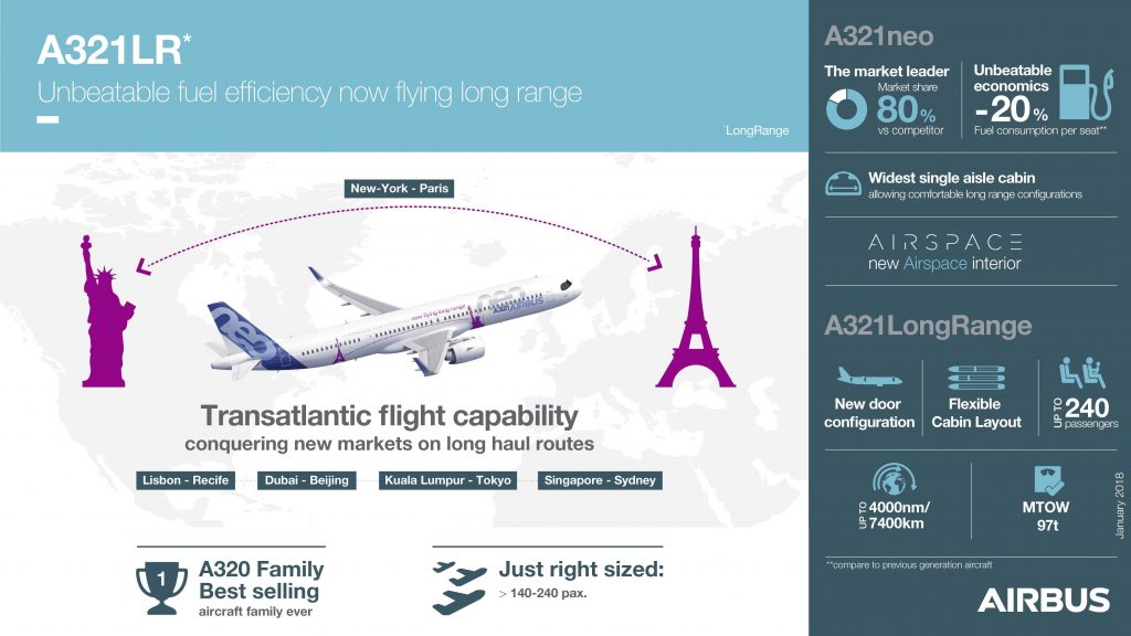Airlines können so Direktflüge abseits der großen Hubs ermöglichen. Auch tägliche Frequenzen zu Zielen, die nur 2-3x/Woche bedient werden sind wirtschaftlich machbar. Die portugiesische TAP macht es vor: Von Lissabon sind so Direktflüge in deren wichtigsten Markt Brasilien abseits der Metropolen Sao Paulo und Rio machbar. Auch die Strecke nach Tel Aviv wurde in der Vergangenheit mit dem A321LR durchgeführt.