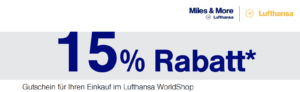 Der vierstellige PIN für Zahlungen und Abhebungen mit der Karte kam mit separater Post. Am selben Tag landete in der Inbox (Posteingang vom M&M Konto) der Gutschein über 15% Rabatt im Lufthansa Worldshop.