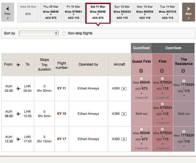 In allen Fällen lässt sich die Verfügbarkeit von Plätzen über die Etihad Guest Seite überprüfen. Sollten hier First Saver Plätze verfügbar sein, solltet Ihr diese auch über American Airlines buchen können und zwar zu den Meilenwerten, welche oben genannt werden und nicht zu denen, welche Euch bei Etihad angezeigt werden .