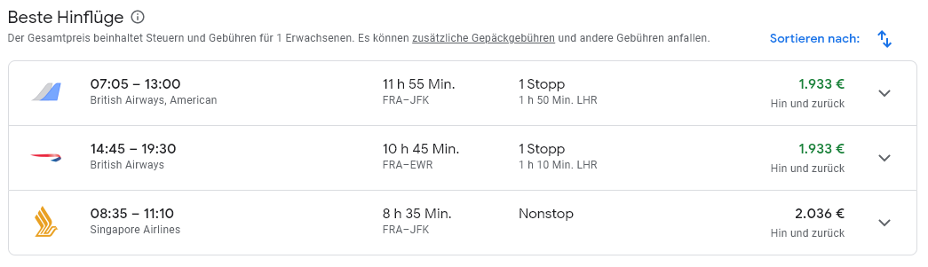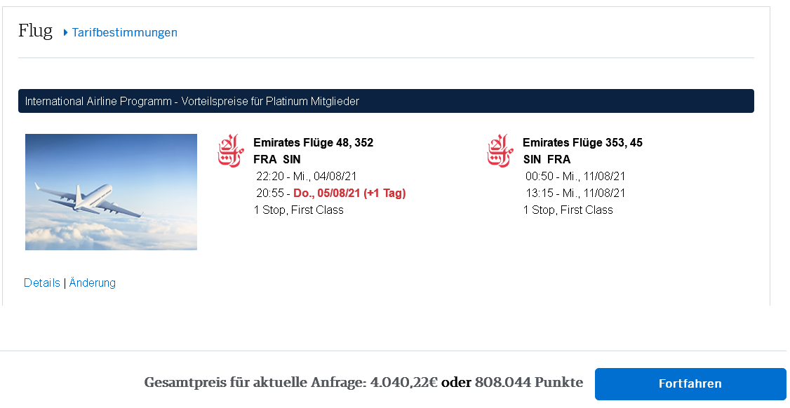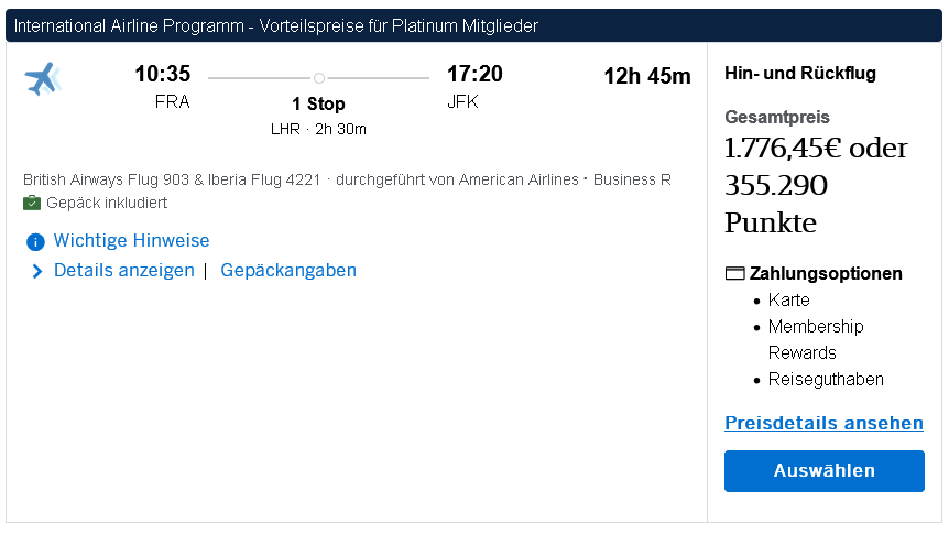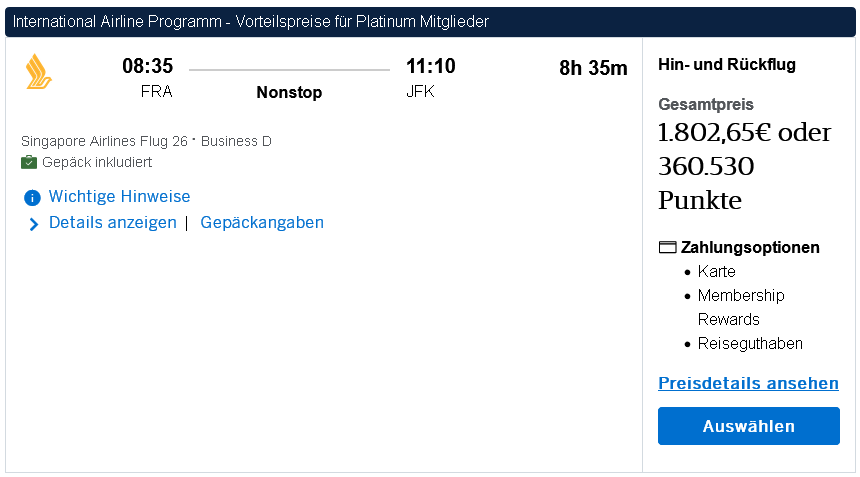 Gelegentlich finden Preissuchmaschinen bei Online Reisebüros günstigere Tarife, als die Airline selbst bei sich ausweist. Häufig habe ich diese Tarife dann auch bei American Express gefunden. In Kombination mit dem Reiseguthaben kann das dann ganz praktisch sein.