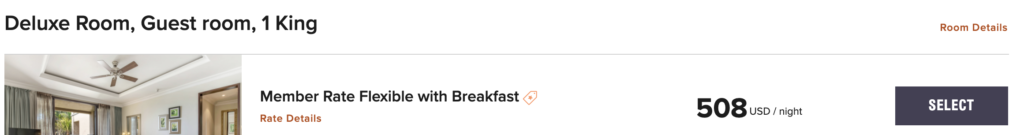 Eine Übernachtung in einem Standardzimmer kostet dort 508 US$, aber nur 35.000 Punkte.