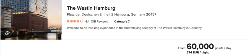Am einfachsten nutzt man die Punkte für Hotelaufenthalte. Im Idealfall löst Ihr diese für Häuser der höheren Kategorien ein, die normalerweise sehr teuer sind. In Deutschland gibt es z.B. das Westin in Hamburg für 60.000 Punkte.