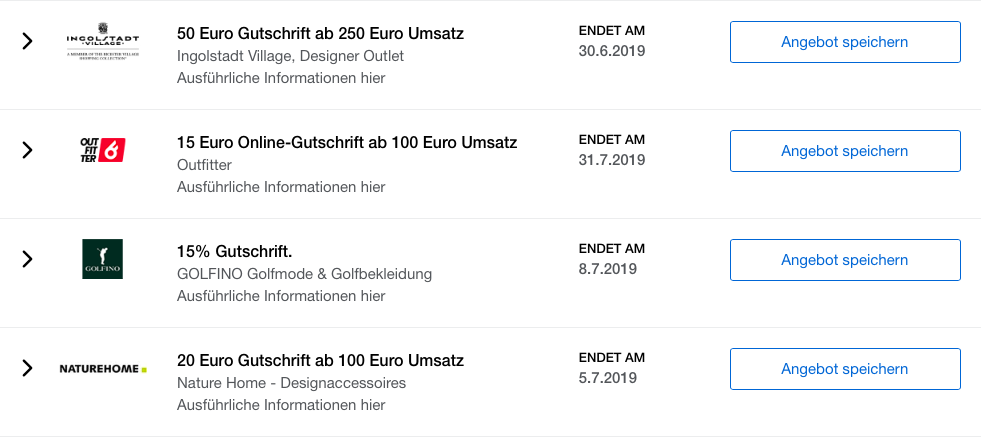 Um die AMEX Offer Angebote auch nutzen zu können, müsst Ihr diese im Kartenkonto „aktivieren“. Hierfür muss man auf „Angebot speichern“ klicken, bevor man den entsprechenden Umsatz macht. Wenn Ihr mehrere American Express Kreditkarte besitzt, dann müsst Ihr jede Kreditkarte einzeln für die jeweilige AMEX Offer registrieren und auch die entsprechende Ausgabe mit dieser Karte durchführen.