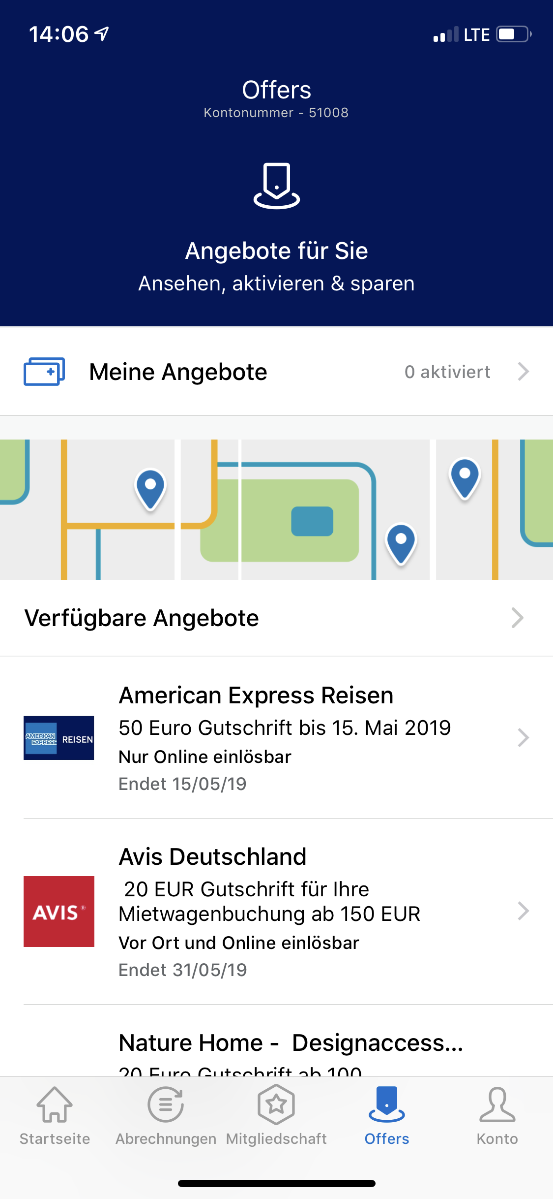 Eure persönlichen AMEX Offers findet Ihr in Eurem Kartenkonto zur American Express Kreditkarte direkt auf der Startseite, wenn Ihr nach unten scrollt, unter den neuen Transaktionen. Auch in der American Express App könnt Ihr die AMEX Offers sehr einfach finden. Hier gibt es unten bei dem Menüpunkt „Offers“.