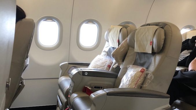 Betr. Handgepäck in Reihe 1 (oder am Notausgang): Neulich, mit LH auf dem Weg von LYS nach FRA, schlug mir die Flugbegleiterin auch vor, beim Start die Handtasche hinter der Stange unterm Sitz zu stellen. Fand ich eine gute Idee, und in der BizClass ja unproblematisch, da der Mittelsitz der Reihe dahinter ja frei bleibt.