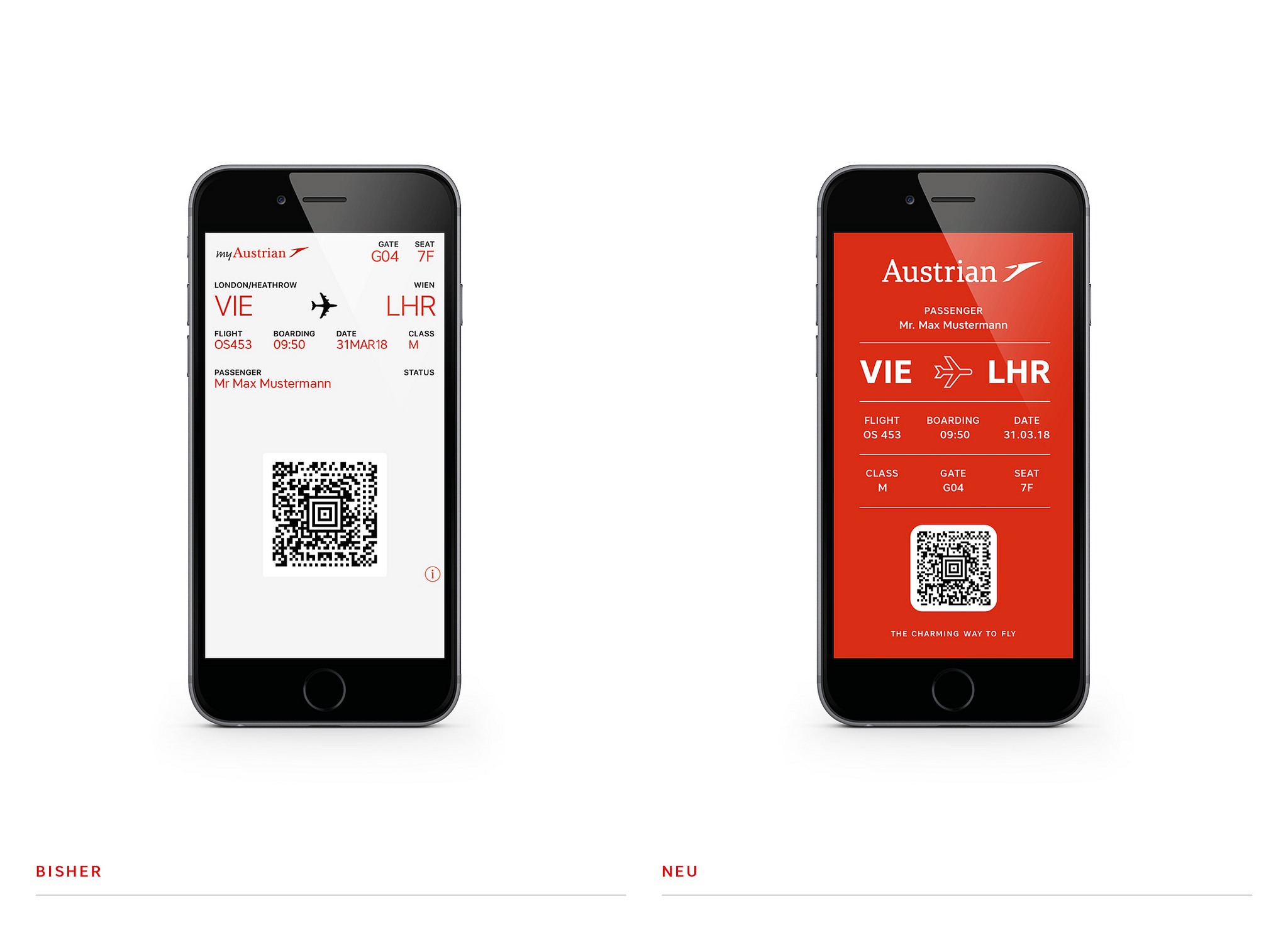 Auch am Boden wird es kleinere Veränderungen bei Austrian Airlines geben. So werden die Bordkarten neu gestaltet und knallig rot. Hiermit will man auch den Bedürfnissen der digitalen Welt gerecht werden.
