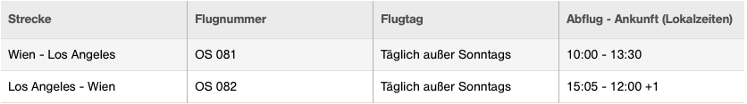 Die Flugzeiten des neuen Austrian Fluges nach Kalifornien sehen dabei wie folgt aus: