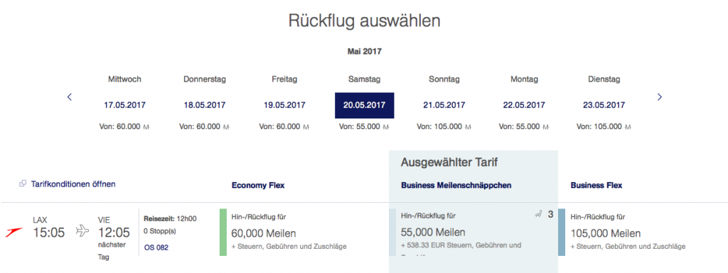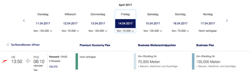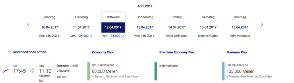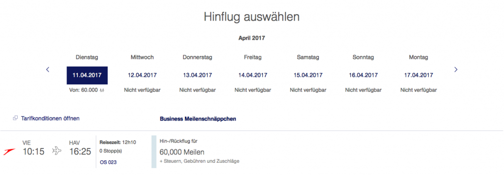 Austrian Airlines Meilenschnäppchen April 2017 | Verfügbarkeit