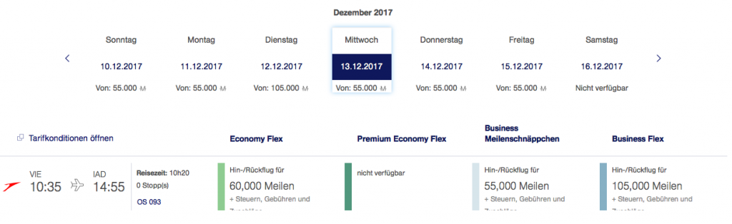Austrian Airlines Meilenschnäppchen Dezember 2017 | Verfügbarkeit