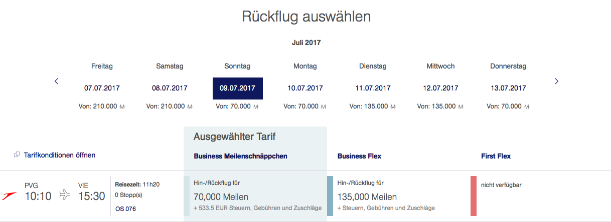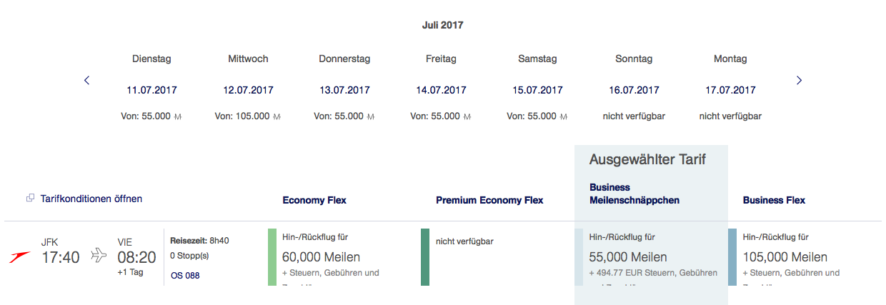 Austrian Airlines Meilenschnäppchen Juli 2017 | Verfügbarkeit