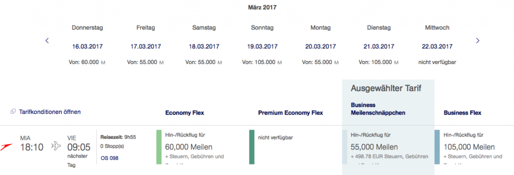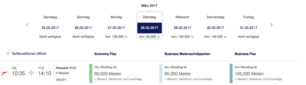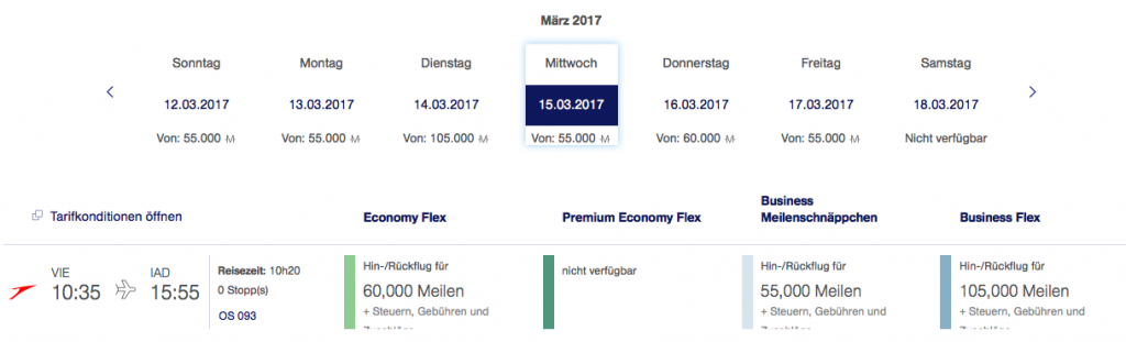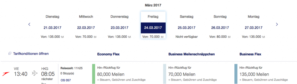 Austrian Airlines Meilenschnäppchen März 2017 | Verfügbarkeit