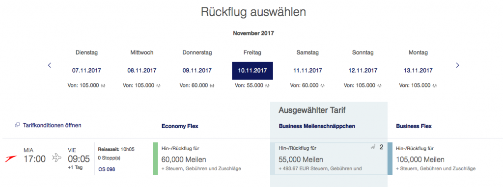 Austrian Airlines Meilenschnäppchen September 2017 | Verfügbarkeit