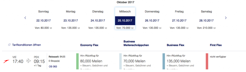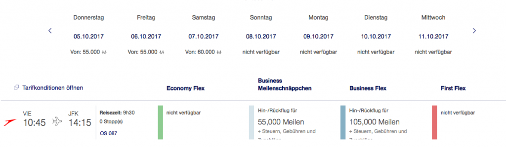 Austrian Airlines Meilenschnäppchen September 2017 | Verfügbarkeit