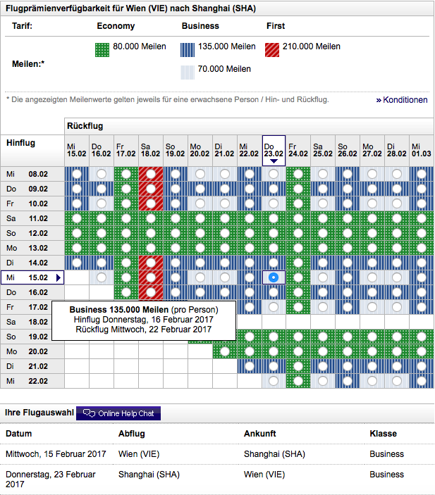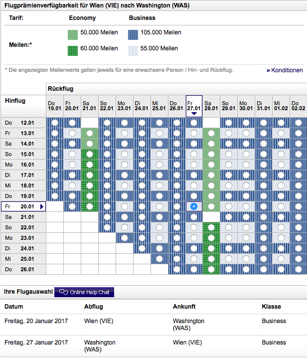 Austrian Airlines Meilenschnäppchen Januar und Februar 2017 | Verfügbarkeit