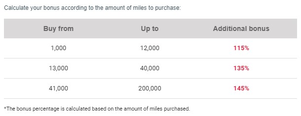 Die Anzahl maximal kaufbarer Meilen beträgt bei dieser Promotion 200.000. So gibt es mit dem 145% Bonus insgesamt 490.000 Meilen für 6.600 USD bzw. 6.000 Euro.