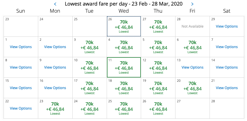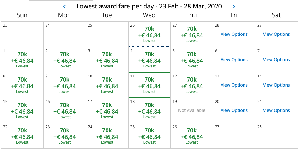 - United MileagePlus: 70.000 Meilen (keine Treibstoffzuschläge)