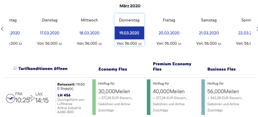 Sowohl Lufthansa, als auch Swiss haben eine enorme Menge an Prämienflügen freigegeben. So findet man z.B. bei Swiss auf dem Flug von Zürich nach Los Angeles, welcher sonst nur schwer als Award in der Business Class zu buchen ist, an vielen Tagen der Woche vier Business Class Sitze als Prämienflug.