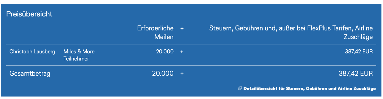 Zusätzlich gibt es auch noch die Early Bird Prämien, welche zwischen 20.000 und 30.000 Meilen in der Economy Class kosten, zzgl. etwa 350 Euro an Steuern und Gebühren, für den Hin- und Rückflug. Sicherlich ist es nicht der spektakulärste Einsatz von Meilen, aber wer in der Economy Class fliegen will und Flüge teils schon über 1.000 Euro kosten, ist es eine Überlegung wert und nicht schlecht, wenn man die Option kennt.