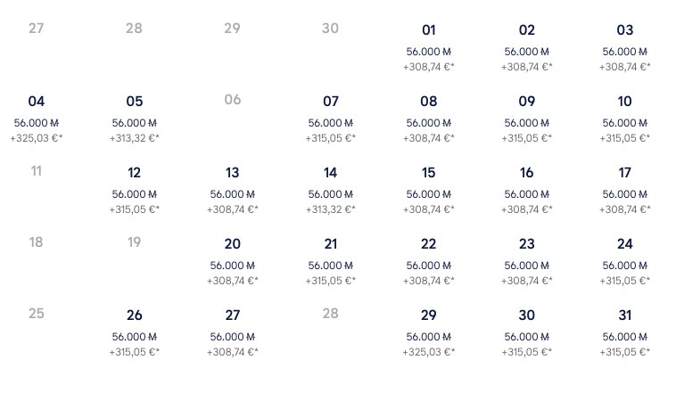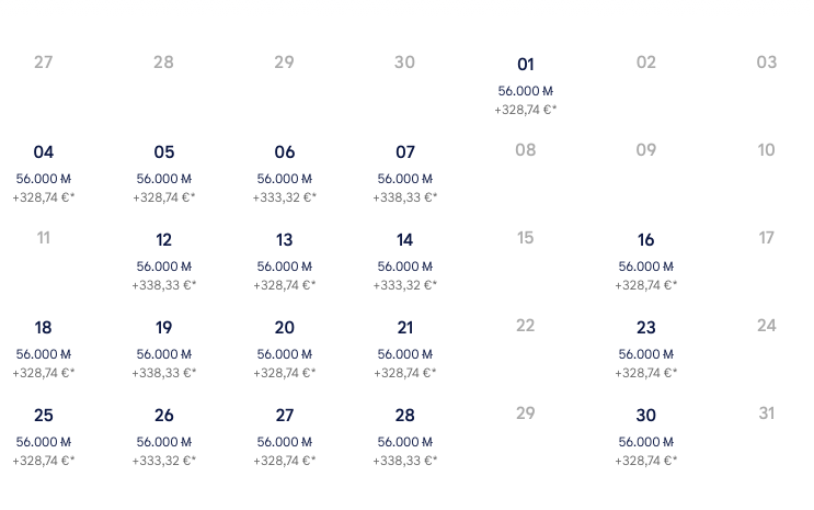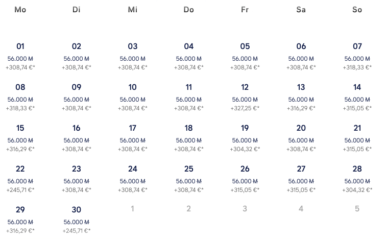 Auch hierbei gilt, dass vor allem Prämienflüge in der Economy Class sehr einfach zu haben sind (auf quasi allen Flügen), aber auch in der Business Class findet man viele verfügbare Daten, nur mit den Uhrzeiten muss man etwas flexibel sein.