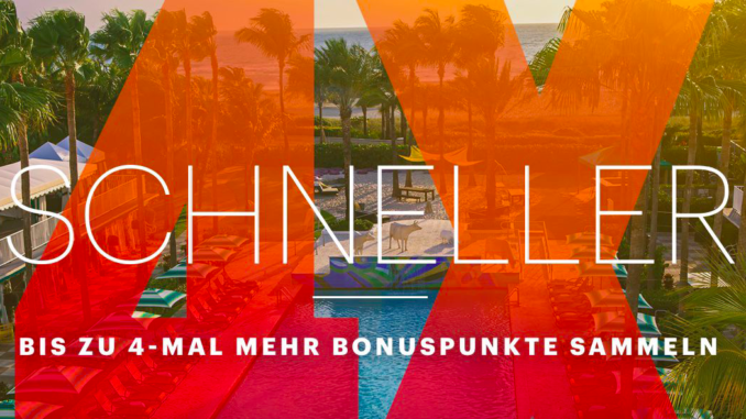 Bei Ihrem ersten anrechnungsfähigen Aufenthalt nach Registrierung für die Aktion (mindestens eine Übernachtung zu einer qualifizierenden Zimmerrate mit Gesamtausgaben von mindestens 30 $) erhalten Sie doppelte Punkte bis maximal 100.000 Punkte für diesen Aufenthalt. Bei Ihrem zweiten anrechnungsfähigen Aufenthalt erhalten Sie doppelte Punkte bis maximal 100.000 Punkte für diesen Aufenthalt. Bei Ihrem dritten anrechnungsfähigen Aufenthalt erhalten Sie dreifache Punkte bis maximal 100.000 Punkte für diesen Aufenthalt. Bei Ihrem vierten anrechnungsfähigen Aufenthalt und bei allen weiteren Aufenthalten während des Aktionszeitraums erhalten Sie vierfache Punkte bis zu maximal 100.000 Punkten pro Aufenthalt. Für alle Aufenthalte kann ein Mitglied bei dieser Aktion insgesamt maximal 400.000 Bonuspunkte sammeln.
