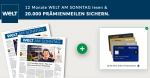 Das Abo der WELT am Sonntag bekommt Ihr aktuell für 239.20 Euro mit 20.000 Miles&More Prämienmeilen als Bonus. Hierbei entsteht eine Ratio von 11,96 Euro pro 1.000 Prämienmeilen, was bei dieser Menge an Meilen ein hervorragender Deal ist.