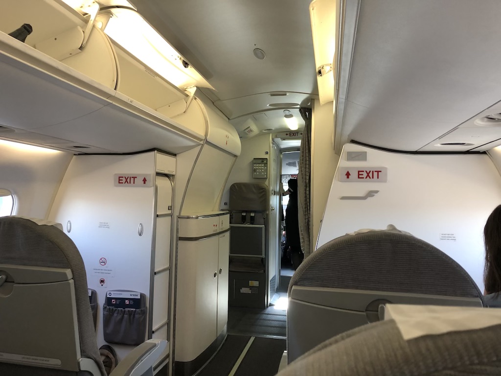 Objektiv betrachtet eine Leistung mit Stärken und Schwächen. Immerhin wird der Nachbarsitz freigehalten, bei KLM erlebte ich daß dies nicht der Standard der Europa Business Class ist. Ansonsten ein recht durchgesessenes Polster, die Maschine ohne Entertainment, Internet oder Stromanschluss. Bei der nicht nutzbaren Toilette bin ich – bei allem Verständnis für die Crew – zwiegespalten.