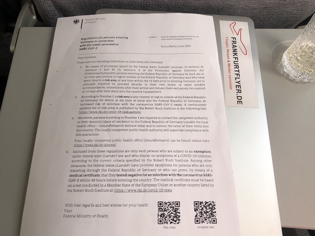 Nach dem Start wurde der Vorhang zwischen den Klassen geschlossen, eine Flugbegleiterin startete unmittelbar den Service in der Economy Class. Dies war gleichzeitig der Zeitpunkt an dem ich feststellte, dass für alle Passagiere nur der hintere Waschraum zur Verfügung stand. Man sollte in diesen Zeiten dann wenn möglich Toilettengänge im Flugzeug vermeiden und nochmal vor dem Boarding das WC im Terminal nutzen.
