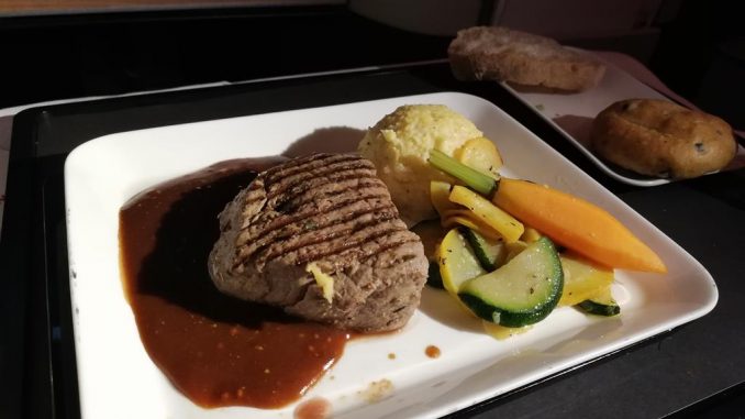Diese Karte trägt bei der Schweizer LH-Tochter den Titel „Taste of Switzerland“, aktuell stehen darin Mahlzeiten wie Rindsfilet mit Pfeffersauce, Poulet mit Kräuterfüllung, Zanderfilet mit Zitronen-Beurre blanc sowie vegetarische Singapur-Nudeln mit Gemüse. Mit dem neuen Service haben Business-Gäste bestenfalls also die Wahl zwischen acht Hauptgängen. On Top kommen noch die Special Meals, die einige Gäste aus religiösen oder medizinischen Gründen wählen.