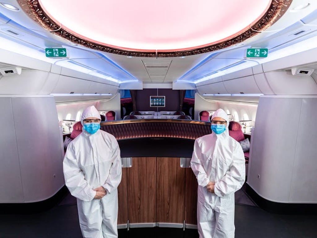 Um Kontakte zu minimieren und auch die Crews in der Kabine zu schützen gab es bereits zahlreiche Maßnahmen. Die meisten Flugbegleiter müssen nun Masken tragen und dürfen Handschuhe benutzen. Manche Airlines haben sogar eigene Kreationen entworfen, die eher Ganzkörper-Schutzanzügen ähneln als Uniformen.