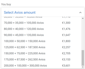 - Wählt aus dem Dropdown-Menü die Menge an Avios aus, die Ihr kaufen wollt (der Bonus und die Gesamtmenge werden direkt angezeigt).