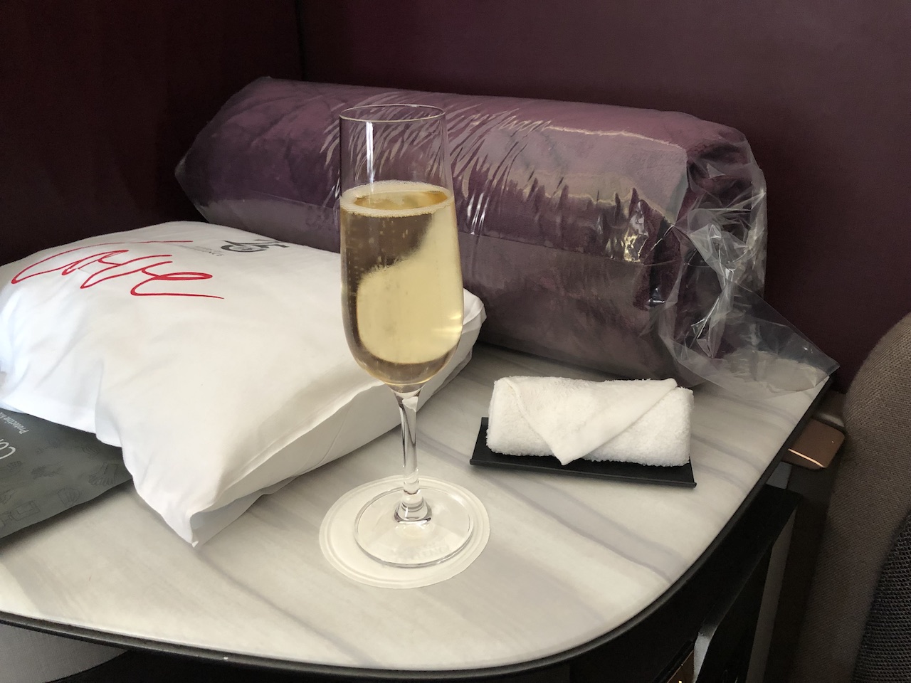 Dafür könnt Ihr dann fast sieben Stunden eine der luxuriösesten Business Classes weltweit genießen. Mit der opulenten Al Mourjan Lounge vor dem Abflug in Doha und an Bord einem flachen Bett mit hoher Privatsphäre. Natürlich begleitet von Champagner und einem mehrgängigen Menü a la Carte.
