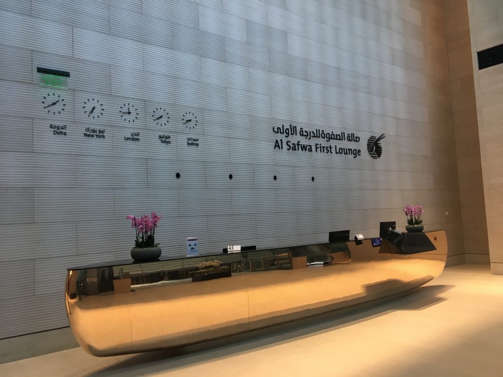 Eine Möglichkeit in die exklusive Al Safwa First Class Lounge der Qatar Airways in Doha zu kommen, ist ein First Class Ticket. Auf kurzen Strecken wie Doha-Kuwait gibt es die Möglichkeit solche Flüge der ersten Klasse für Avios zu bekommen: