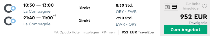 Business Class Flüge zwischen Europa und New York bewegen sich in den meisten Fällen in einem Preisgefüge zwischen 3.000 und 4.000 Euro für den Hin- und Rückflug. Bei manchen Angeboten wird es allerdings noch etwas günstiger und man kann noch einmal 50% sparen. Die reine Business Class Airline La Compagnie, hat nun richtige Kampfpreise aufgelegt und bietet den Hin- und Rückflug zwischen Paris und New York in der Business Class ab 950 Euro an.