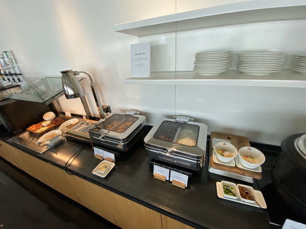 Das Buffet bot einige kalten Snacks und zwei warme Alternativen, passend zur Mittagszeit, an. Alkoholika waren auch vorhanden, wenn auch in einer eher reduzierten Auswahl. Insgesamt machte das Buffet einen guten Eindruck, die Auswahl wurde der Größe der Lounge gerecht. Alles war sehr ordentlich, sauber und frisch.